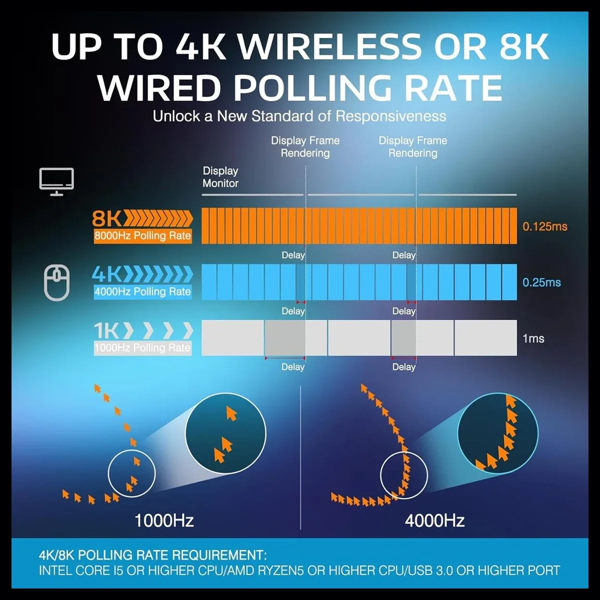 High Polling Options: Supports 4K wireless and 8K wired performance for responsive control