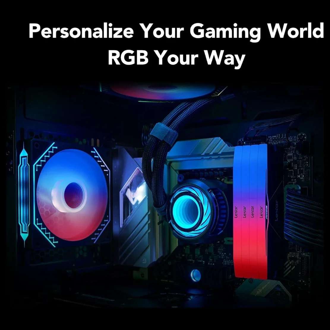 RGB Lighting: Illuminates gaming setups with vibrant RGB lighting through Lexar RGB Sync
