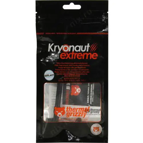 Thermal Grizzly Kryonaut Extreme is a high-performance thermal paste based on our proven Kryonaut paste. Maximum thermal conductivity through the smallest particle size and layer thickness, combined with improved low-temperature resilience is the basis for the best temperatures in extreme overclocking.