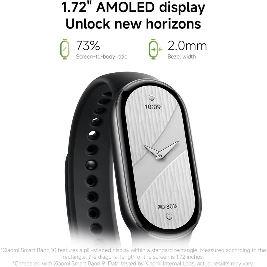 This Xiaomi Mi Smart Band 10 Ceramic Edition features a 1.72″ AMOLED display with ultra-thin 2.0mm bezels, 1500 nits HBM brightness, and color-accurate visuals for clear viewing in any light. It offers fast charging with up to 21 days of battery life, enhanced sleep monitoring, a high-precision electronic compass for accurate swimming direction tracking, and a smoother, smarter experience powered by Xiaomi HyperOS 2.nn
